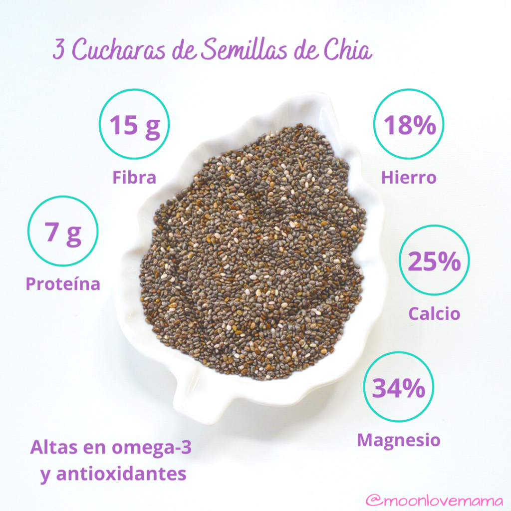Tres cucharas de estas semillitas poderosas nos proveen con 15 gramos de fibra y 7 gramos de proteína. Además nos dan 18% de hierro, 25% de calcio, 34% de magnesio de nuestro consumo diario. ¿Acaso no son puro power?
